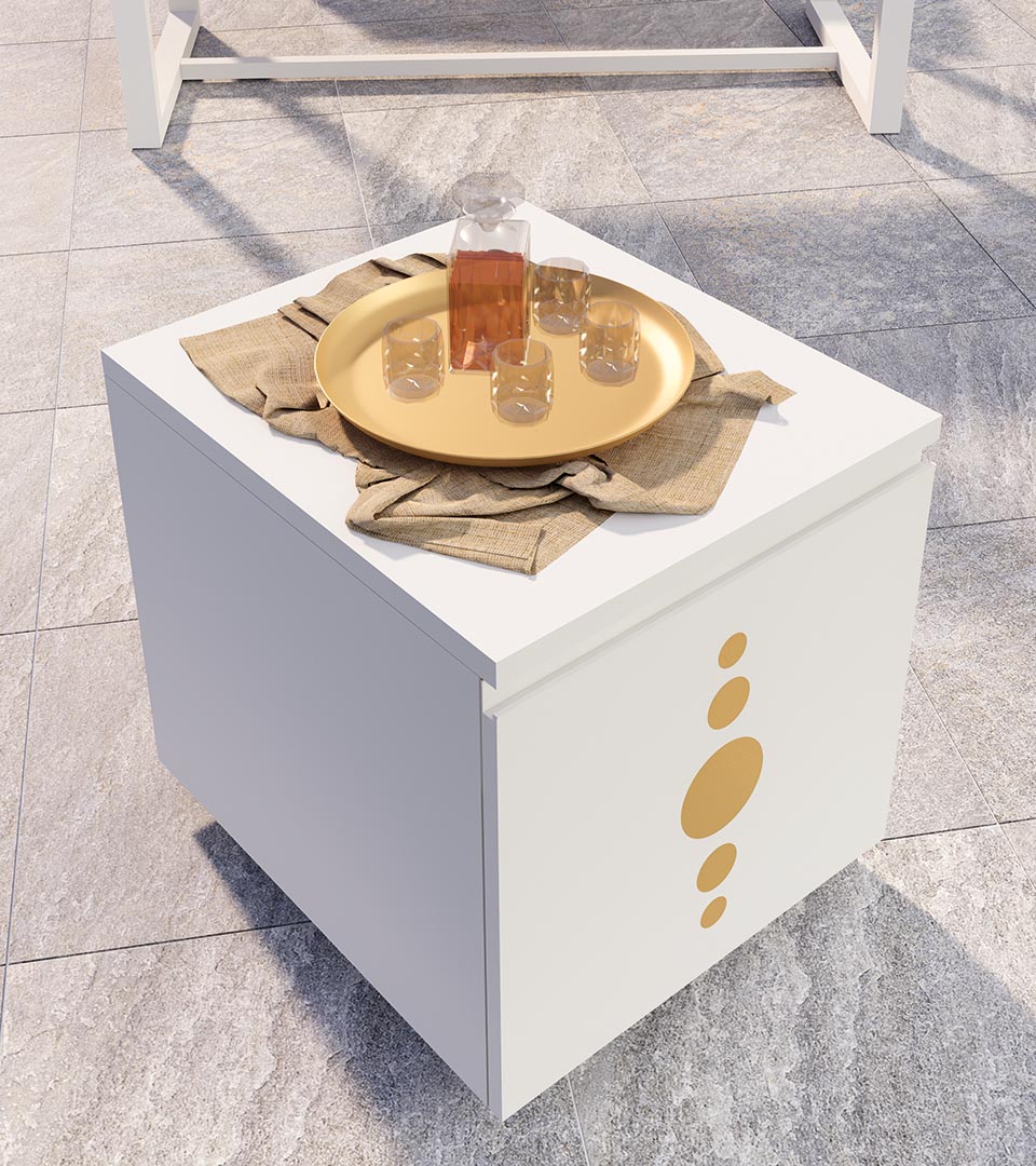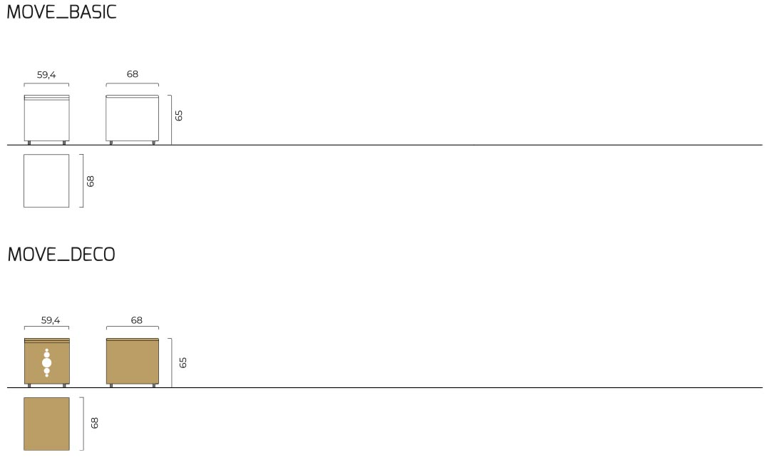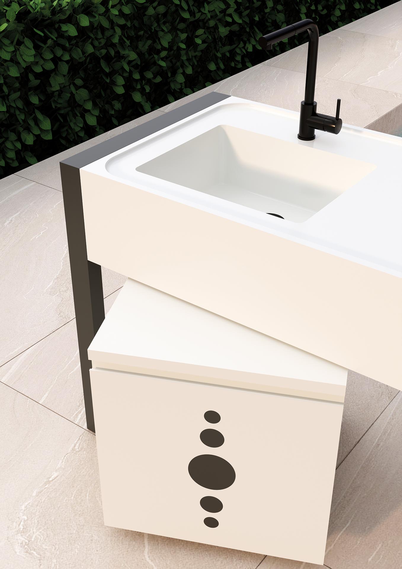 Il Modulo Move, realizzato in acciaio inox verniciato, è pensato per poter avere uno spazio extra nelle nostre cucine e nei nostri complementi d’arredo Outdoor, dove contenere gli accessori da cucina o un frigorifero con certificazione da esterno. La struttura è stata progettata con guarnizione perimetrali magnetiche, per evitare l’infiltrazione di acqua e polvere, in due versioni, una con sistema chiusura ad anta ed una con un sistema di chiusura con cassettone. È completo di quattro ruote per muoverlo in libertà, così da poterlo inserire sia all’interno dei nostri modelli ma anche per essere un accessorio da aggiungere nel proprio arredamento outdoor. Possono essere aggiunti fino a 3 moduli Move nel modello Furore 180 e fino a 4 moduli Move nel modello Portofino 240. Il Modulo Move può essere configurato nella Versione Basic, verniciato con la nostra gamma di colori base oppure personalizzato con tutti i colori della Gamma RAL, oppure nella Versione Deco, con l’aggiunta di un decoro a contrasto.