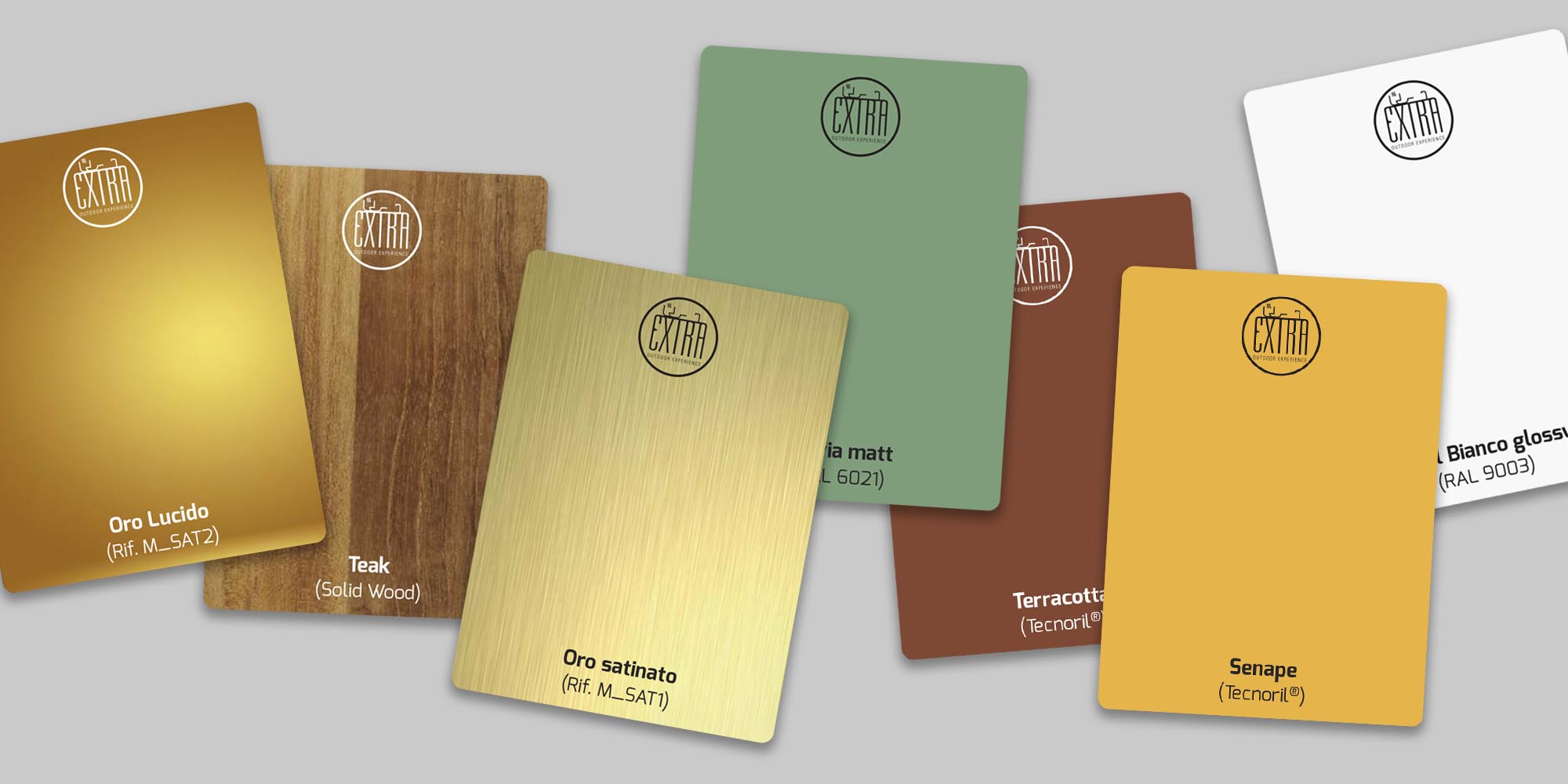 I colori basic di Extra sono verniciati a polvere in finitura opaca e sono, a richiesta personalizzabili in base alla Cartella RAL